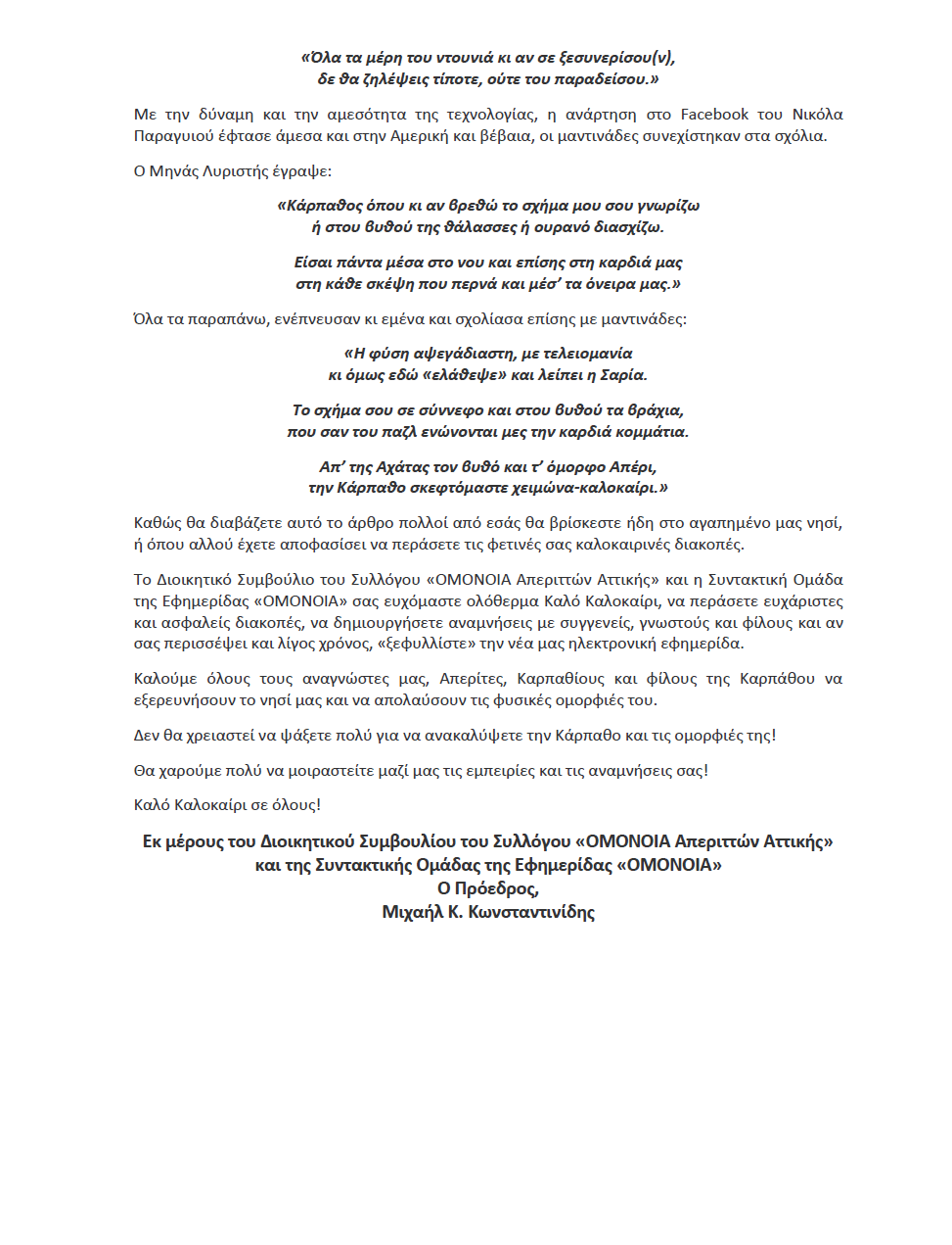 Νέα των Τοπικών ΣυλλόγωνΚαλό καλοκαίρι από την Ομόνοια Απεριτών Αττικής https://www.syllogoskarpathion.com/wp-content/uploads/2018/10/logo.jpg 0 0 Σύλλογος Απανταχού Καρπαθίων https://www.syllogoskarpathion.com/wp-content/uploads/2018/10/logo.jpg Σύλλογος Απανταχού Καρπαθίων2019-07-24 17:55:042019-07-24 17:55:04Καλό καλοκαίρι από την Ομόνοια Απεριτών Αττικής