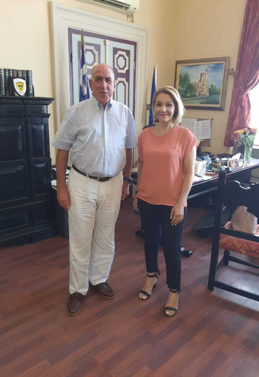 Στη συνάντηση της στο Δημαρχείο με το Δήμαρχο Θεοδόση Νικηταρά, συζητήθηκαν θέματα τοπικής αυτοδιοίκησης και ζητήματα που απασχολούν το δήμο και τους κατοίκους του νησιού, όπως η περαιτέρω ενίσχυση των δομών υγείας, καθώς και τους τρόπους αντιμετώπισης και προώθησης τους στα αρμόδια Υπουργεία.