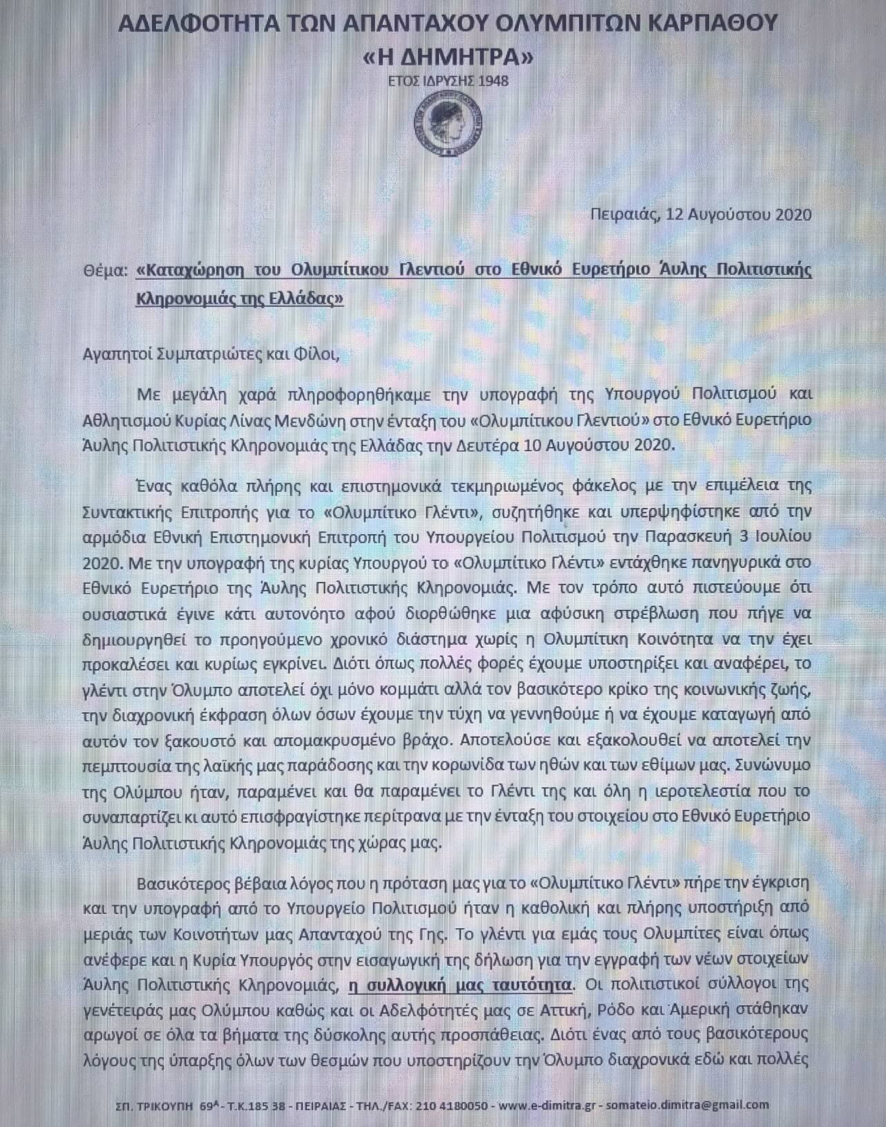Σύλλογος Απανταχού Καρπαθίων2020-08-18 13:42:202020-08-18 13:42:20Δελτίο Τύπου Αδελφότητας για την Εγγραφή του Ολυμπίτικου Γλεντιού στο Εθνικό Ευρετήριο Άυλης Πολιτιστικής Κληρονομιάς της Ελλάδας