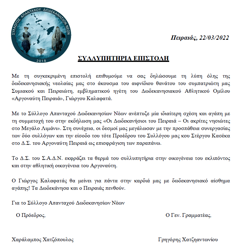 Νέα της Ομοσπονδίας 12κών Σωματείων και λοιπών 12κών ΣωματείωνΣυλλυπητήρια επιστολή Συλλόγου Απανταχού Δωδεκανησίων Νέων – Γιώργος Καλαφατάς https://www.syllogoskarpathion.com/wp-content/uploads/2022/03/αρχείο-λήψης-1.jpg 225 225 Σύλλογος Απανταχού Καρπαθίων https://www.syllogoskarpathion.com/wp-content/uploads/2018/10/logo.jpg Σύλλογος Απανταχού Καρπαθίων2022-03-30 14:49:202022-03-30 14:49:20Συλλυπητήρια επιστολή Συλλόγου Απανταχού Δωδεκανησίων Νέων – Γιώργος Καλαφατάς