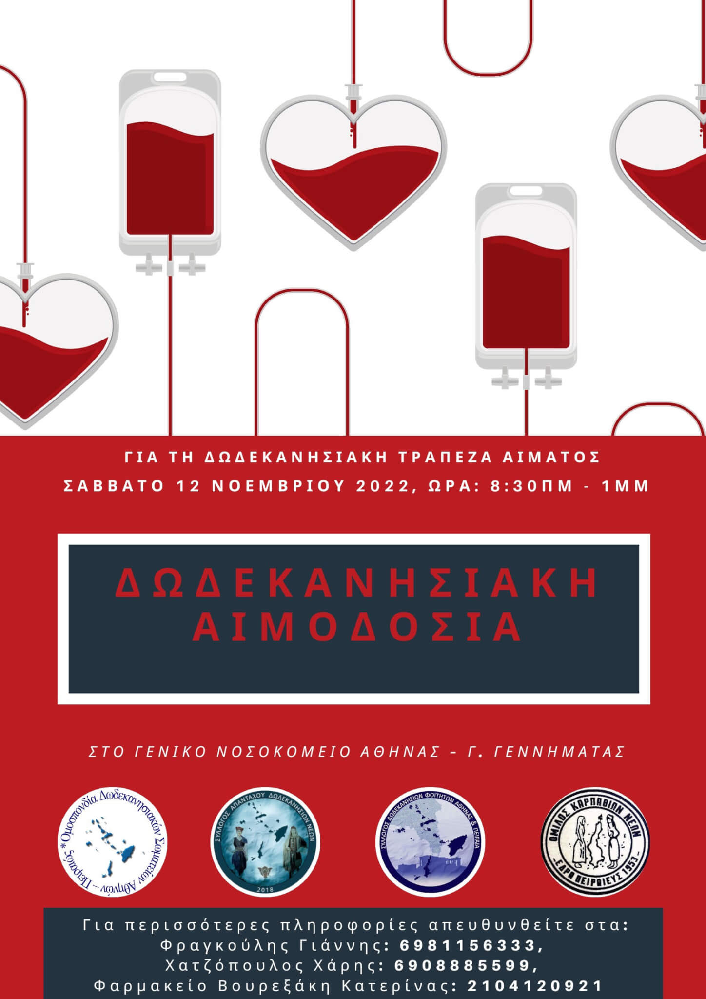 Εθελοντική Αιμοδοσία Δωδεκανησίων στην Αττική | Σάββατο 12.11.2022 | 08:30-13:00 | Νοσοκομείο Γεννηματάς