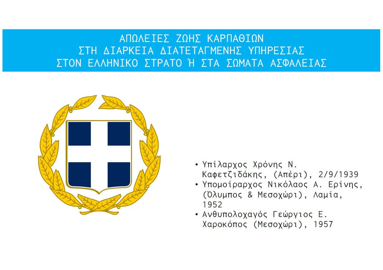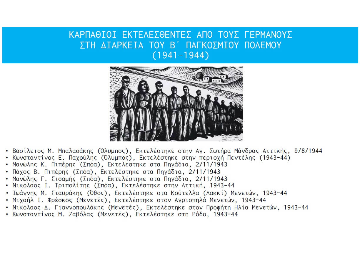 Ακολουθεί ο επικαιροποιημένος κατάλογος των Καρπαθίων ηρώων:
