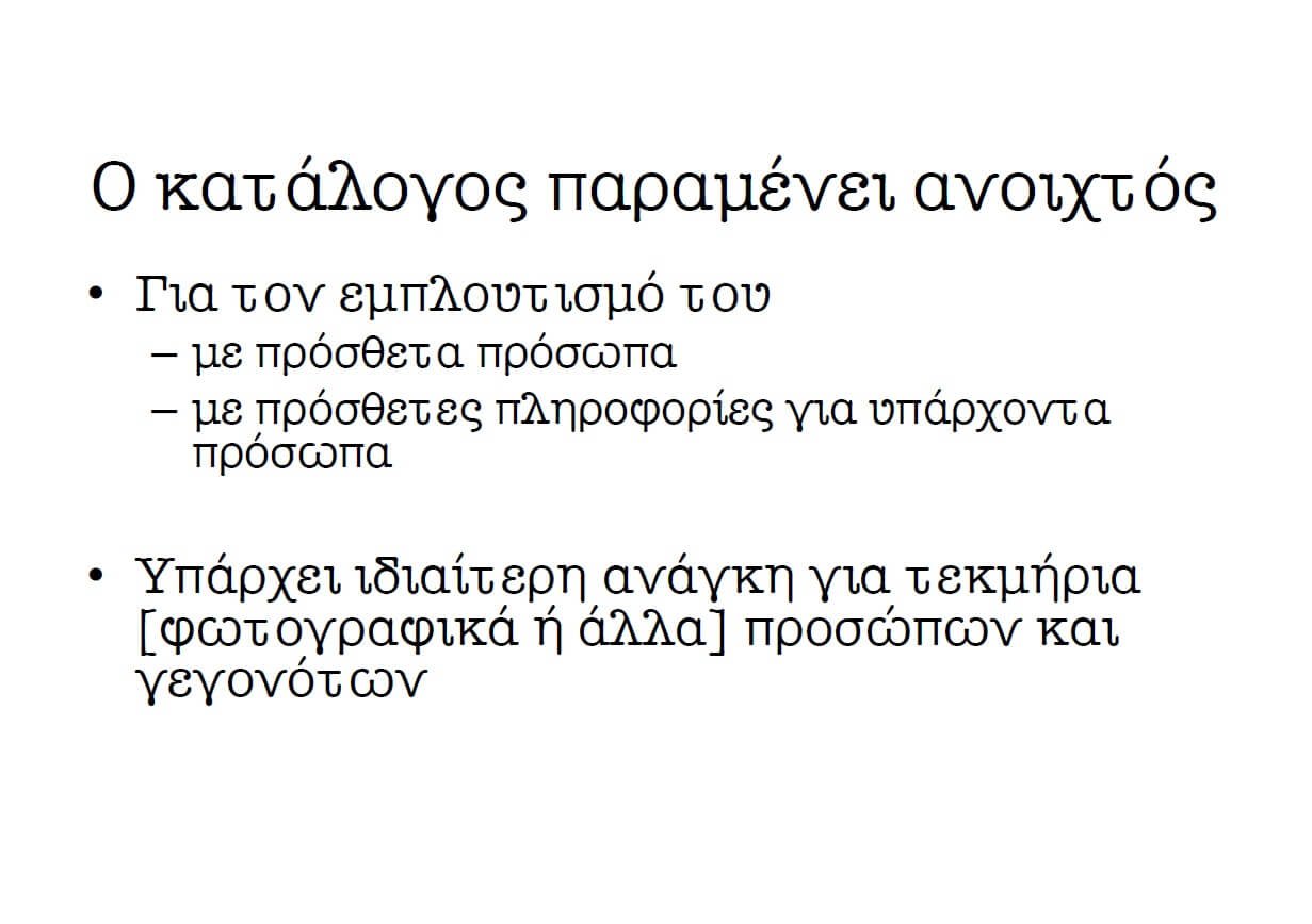 Η προσπάθειά μας έχει φτάσει ήδη σε ένα εξαιρετικά ικανοποιητικό σημείο αν και πάντα θα υπάρχουν περιθώρια για τη βελτίωσή της. Δυστυχώς η αναζήτηση προσώπων, περιστατικών, ημερομηνιών, φωτογραφιών και άλλων στοιχείων από το παρελθόν δεν είναι πάντα μια εύκολη υπόθεση. Ο κατάλογος που παραθέτουμε περιέχει τα μέχρι τώρα αποτελέσματα της έρευνάς μας.
