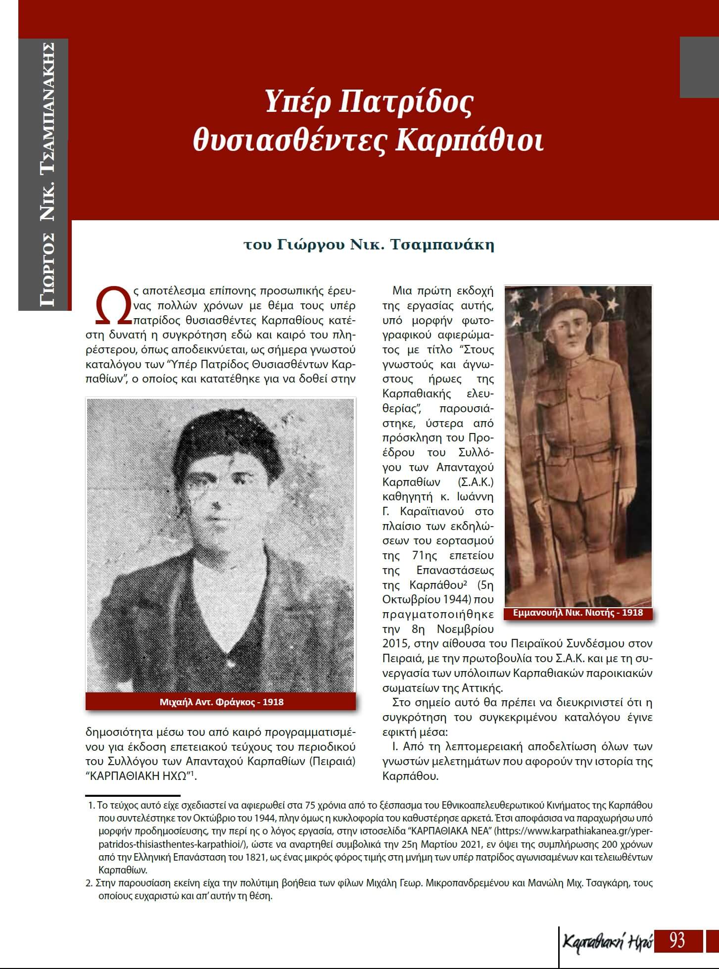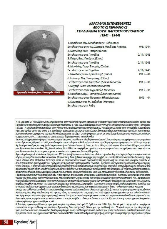 Παρατίθεται η σχετική δημοσίευση του Γιώργου Τσαμπανάκη στο επετειακό τεύχος της “Καρπαθιακής Ηχούς” (455) 1821-2021: