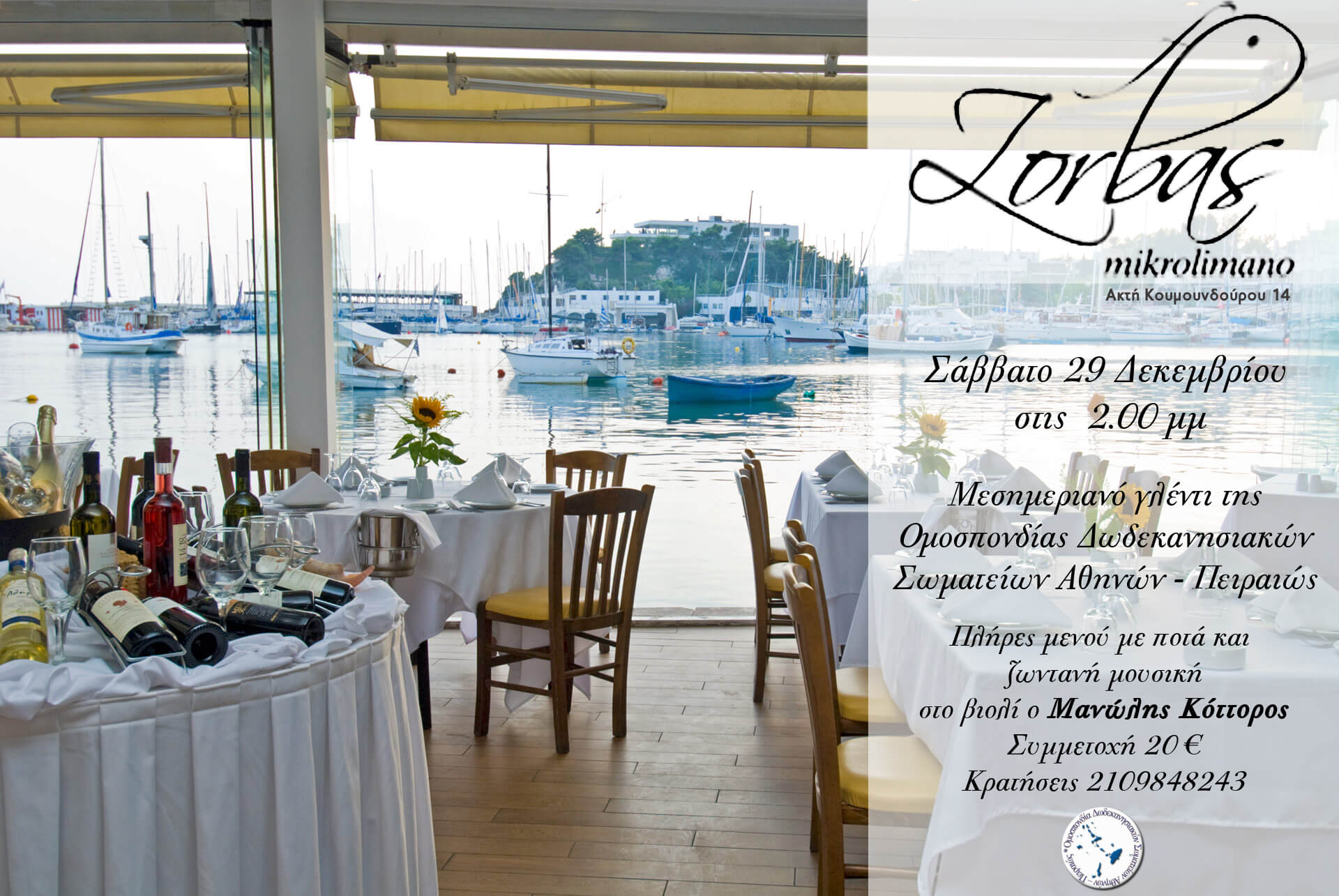 11.00: Κοπή Πίτας Συνδ. Απαντ. Καστελλοριζίων (Κολοκοτρώνη 156 κ΄ Κανθάρου, Πειραιάς)