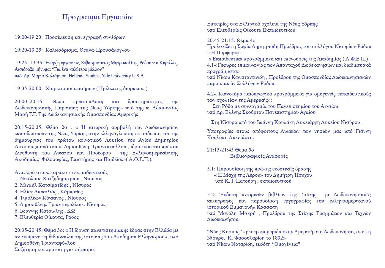 Θερμότατα συγχαρητήρια στον Όμιλο Καρπαθίων Νέων, στη νεολαία μας που αποτελεί το μέλλον της Καρπάθου και των παροικιακών μας σωματείων, αλλά και σε όλους τους συντελεστές της εξαιρετικής παρουσίας του νησιού μας στον εορτασμό της Ενσωμάτωσης! Εξίσου πολλά συγχαρητήρια σε όλους τους συμπατριώτες για την πολυπληθή παρουσία τους στις εκδηλώσεις αυτές! Ζήτω η ενωμένη Κάρπαθος! Ζήτω τα ελεύθερα Δωδεκάνησα!