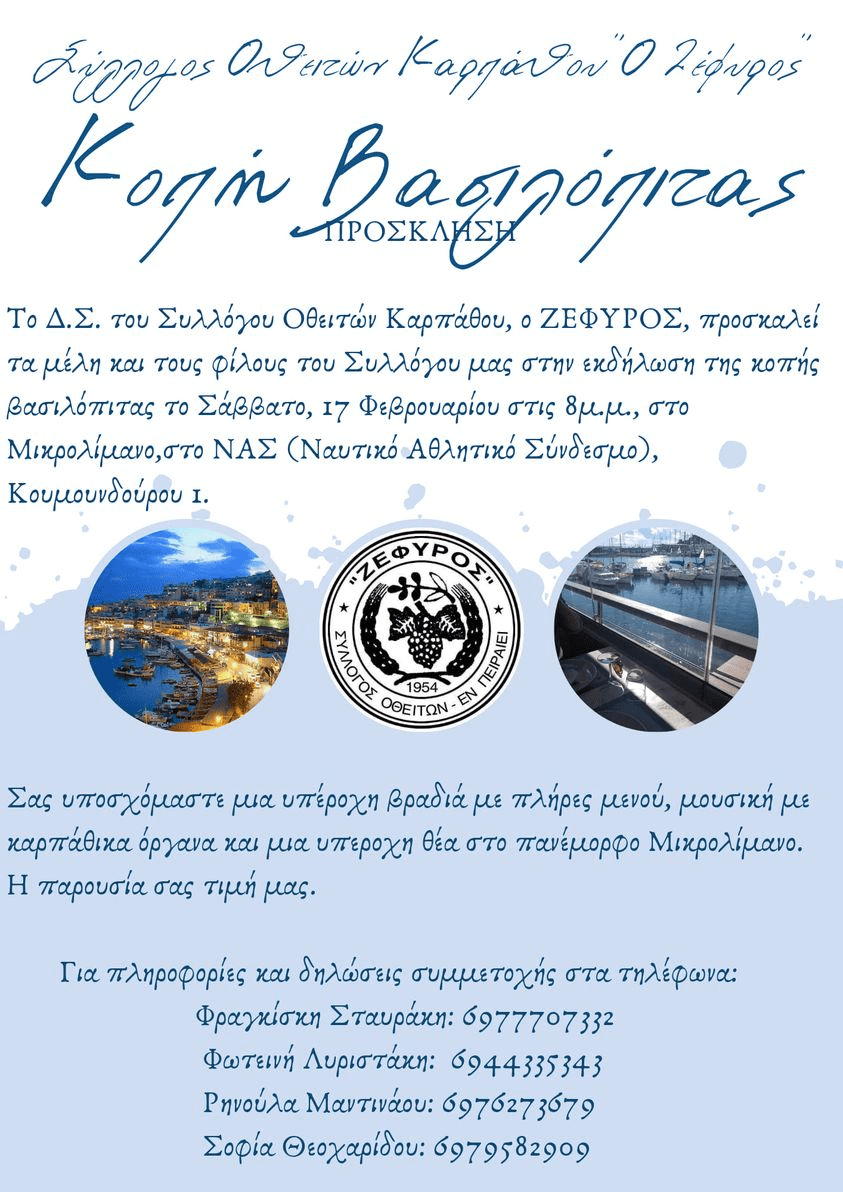 Για το Δ.Σ. του Συλλόγου Απανταχού Καρπαθίων