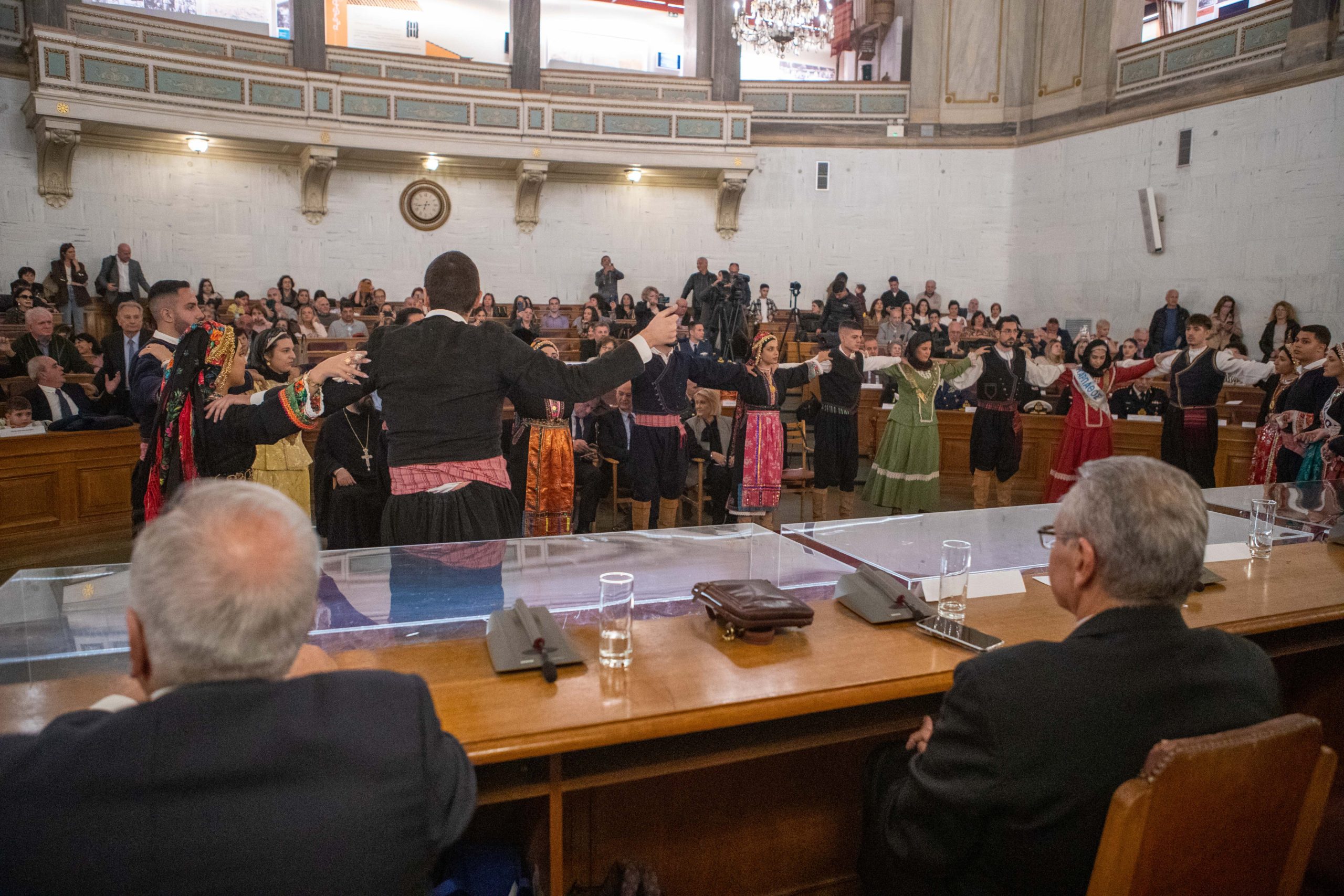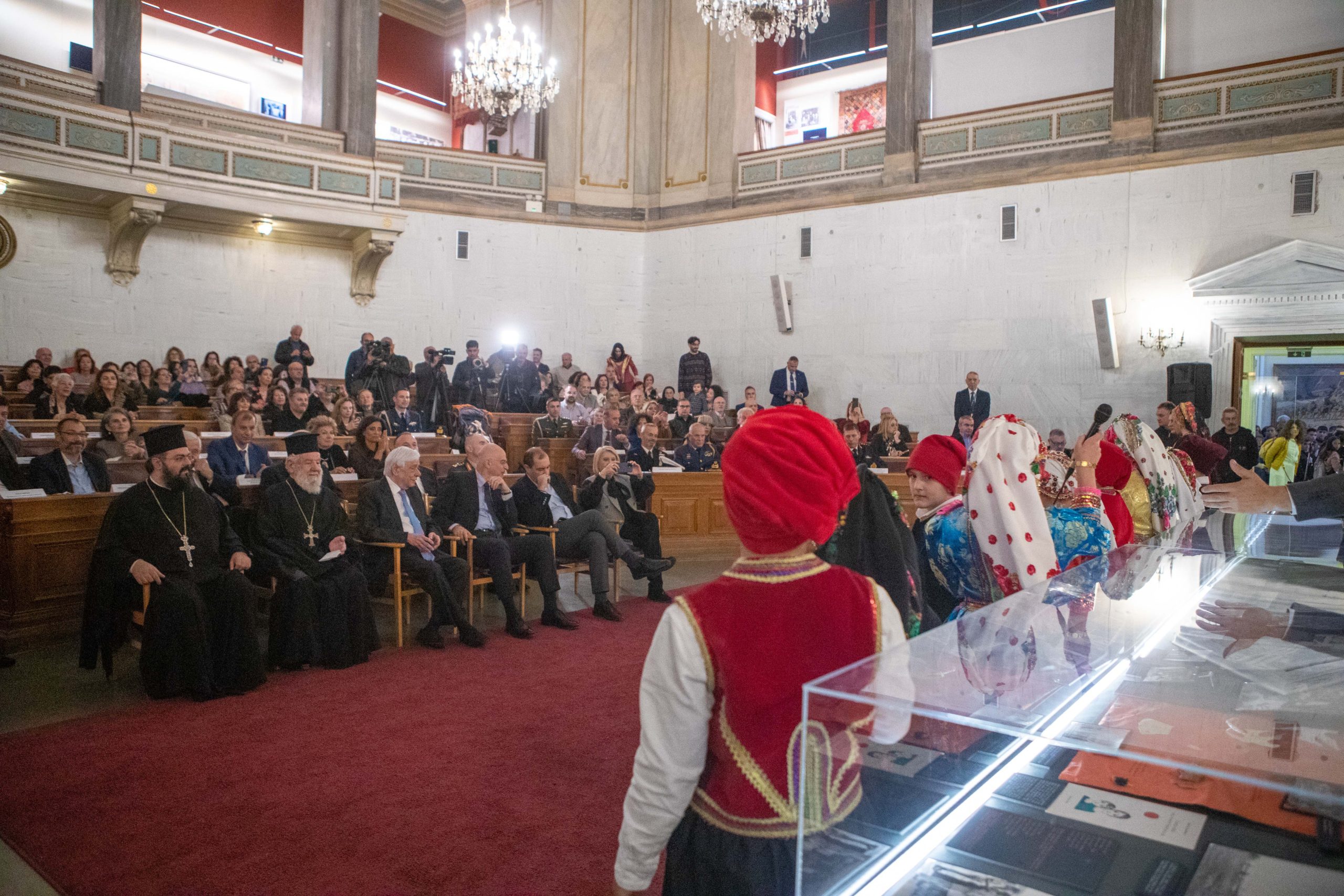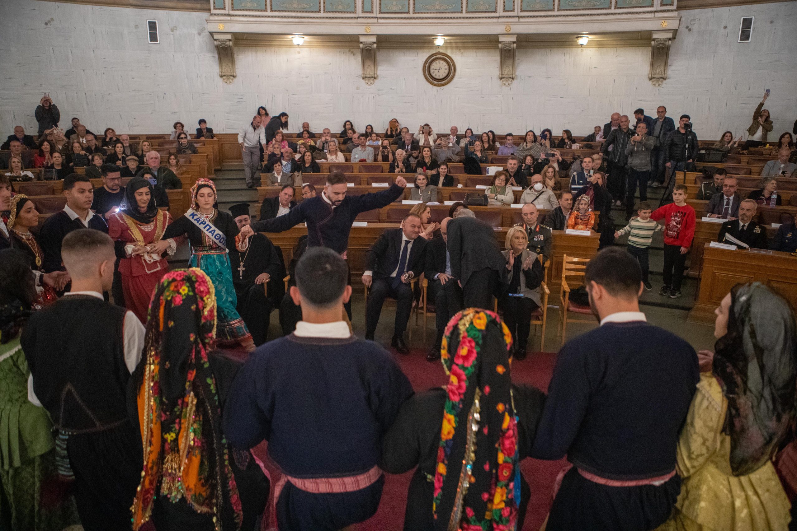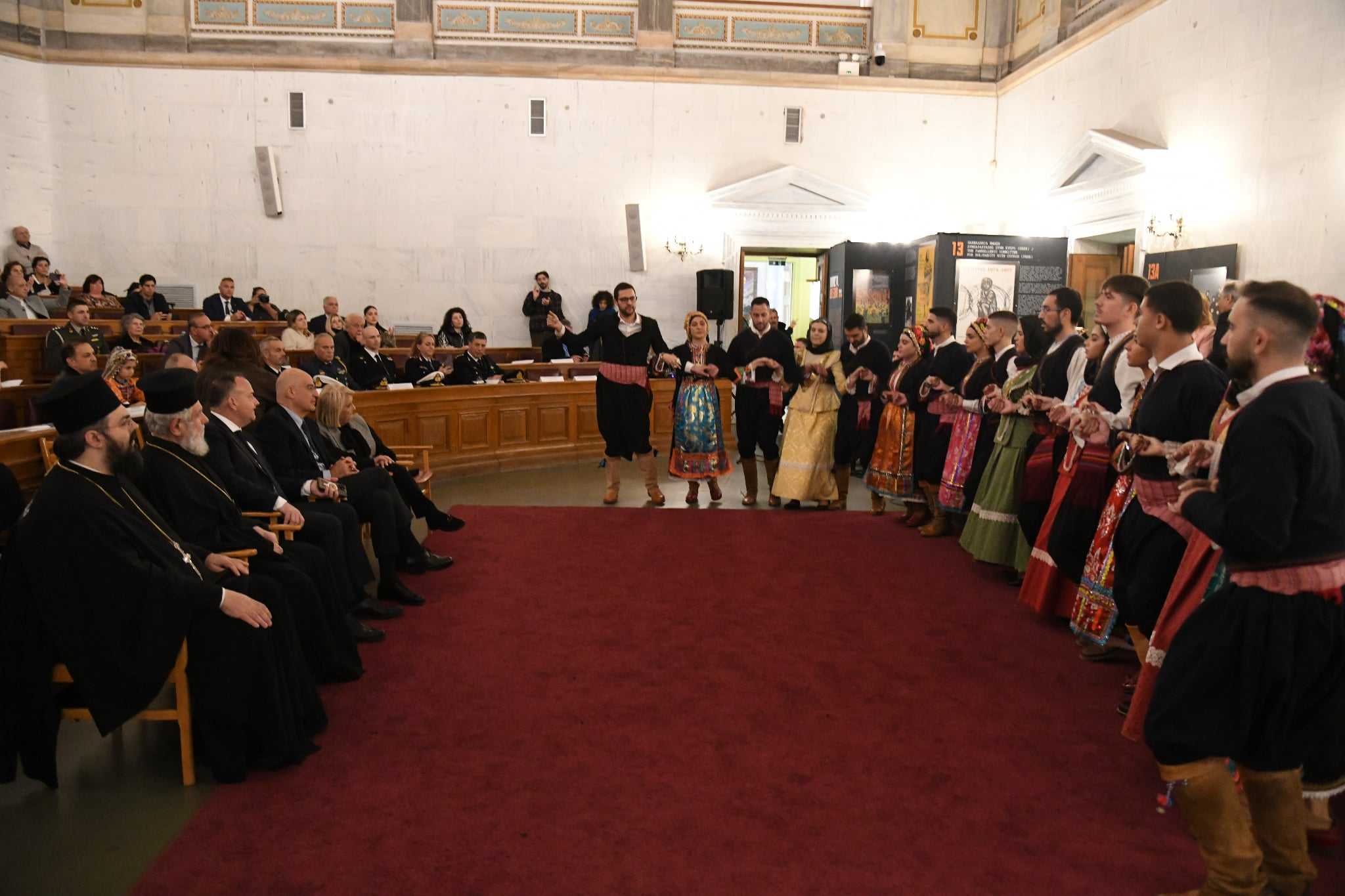 H εκδήλωση συνεχίστηκε στο ιστορικό κτήριο της Παλαιάς Βουλής, παρουσία του τέως Προέδρου της Ελληνικής Δημοκρατίας και εκλεκτού φίλου της Καρπάθου κ. Προκόπιου Παυλόπουλου. Η εκδήλωση ξεκίνησε με την παρουσίαση των χωριών και τοπικών Συλλόγων της Καρπάθου και νησιών της Δωδεκανήσου που εκπροσωπούσαν νέες από τον Όμιλο Καρπαθίων Νέων και τον Σύλλογο Απανταχού Δωδεκανησίων Νέων, ντυμένες με τοπικές ενδυμασίες. Ακολούθησαν απαγγελία μαντινάδων για την Επανάσταση και Απελευθέρωση της Καρπάθου από παιδιά τοπικών συλλόγων της Καρπάθου και χοροί από παιδιά της Αδελφότητας Ολυμπιτών Καρπάθου «Η Δήμητρα».