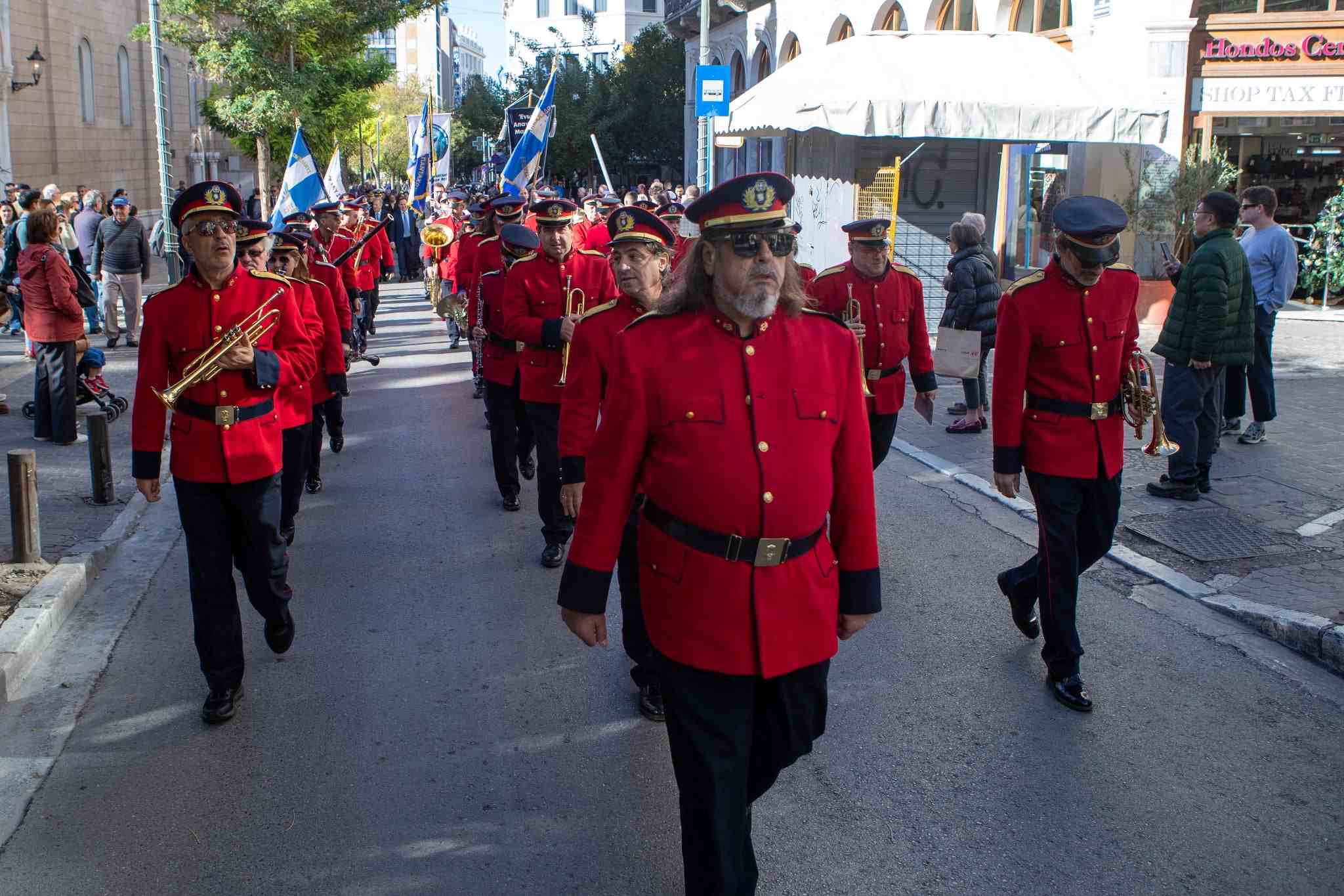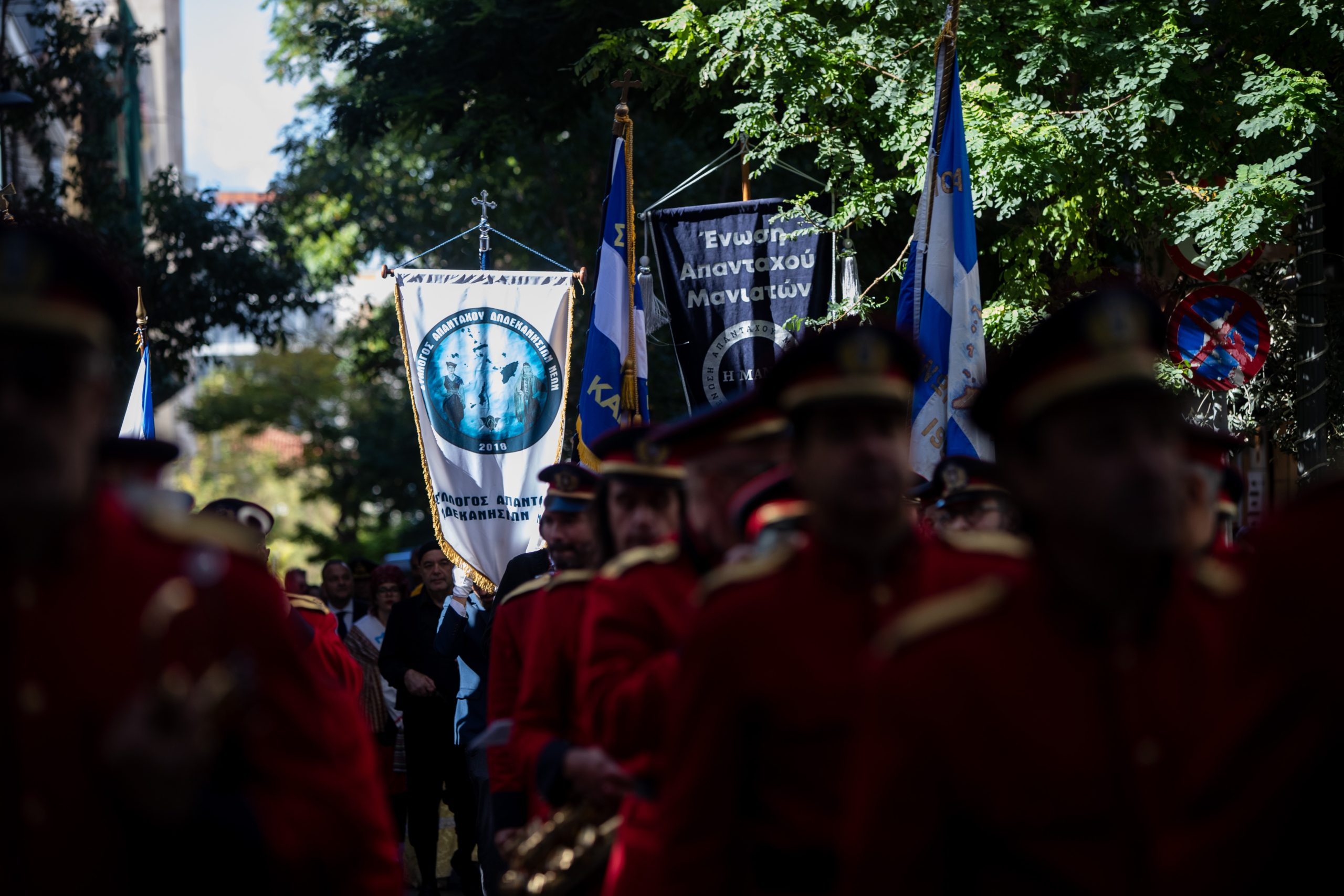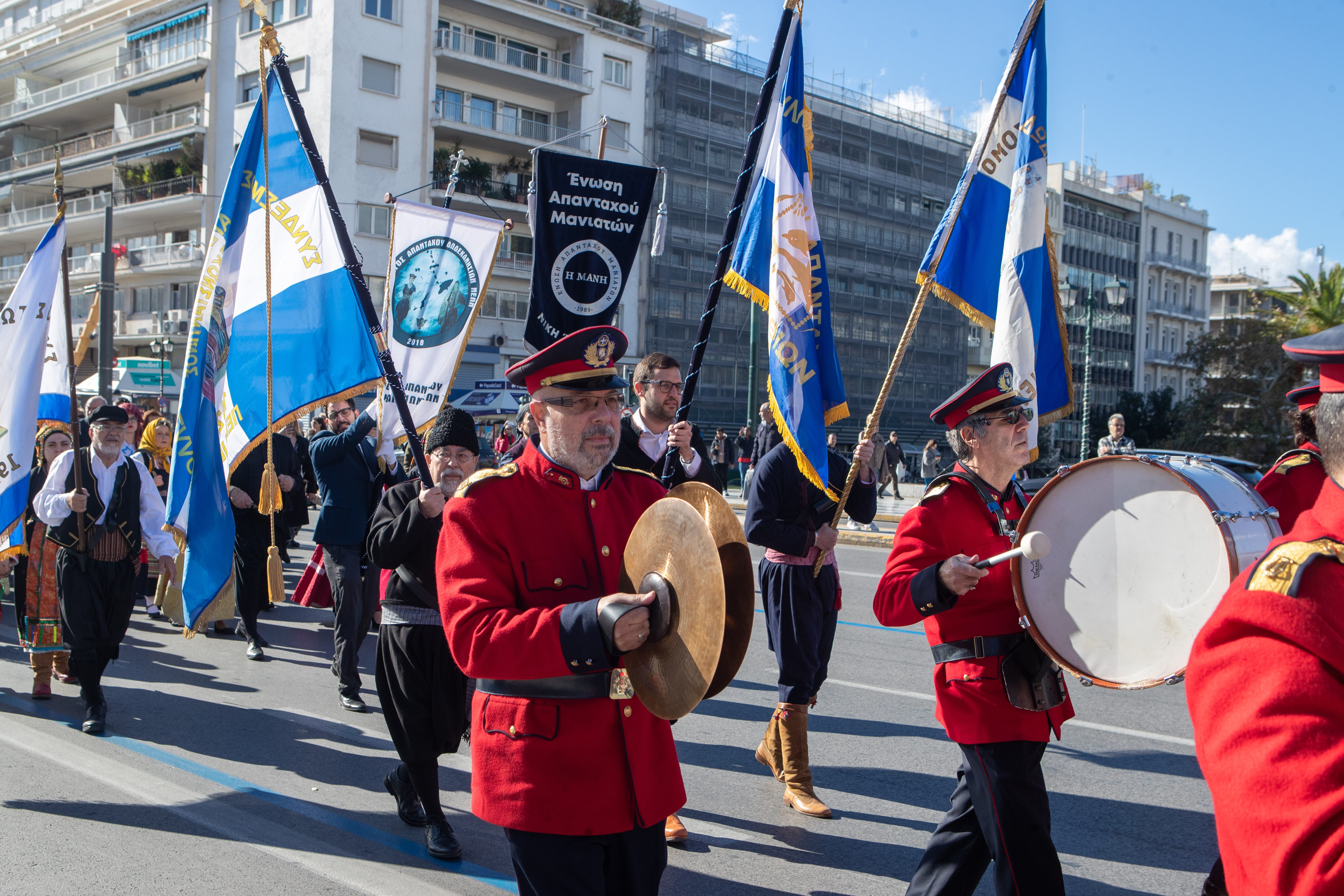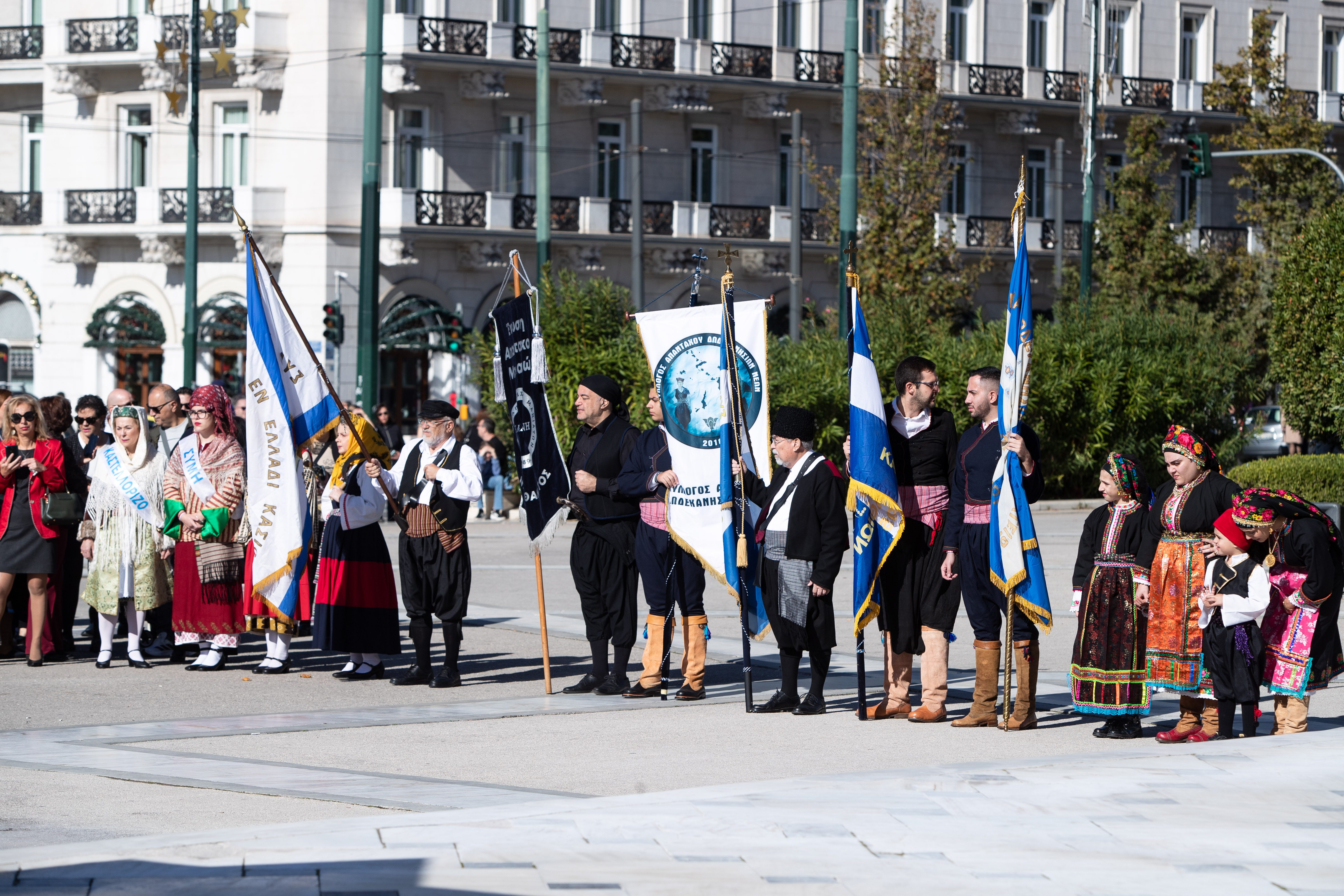 Μετά το πέρας της δοξολογίας ακολούθησε πολυπληθής πομπή από την Ιερά Μητρόπολη κατά μήκος της οδού Μητροπόλεως μέχρι το Σύνταγμα. Προπορεύονταν τα λάβαρα του Συλλόγου των Απανταχού Καρπαθίων, του Συλλόγου των Εν Ελλάδι Κασίων, της Ομοσπονδίας Δωδεκανησιακών Σωματείων, της Ένωσης Απανταχού Μανιατών, του Συλλόγου Απανταχού Δωδεκανησίων Νέων και του Ομίλου Καρπαθίων Νέων, με τη συνοδεία νέων, ντυμένων με τοπικές ενδυμασίες. Την παρέλαση, η οποία κατέληξε στο Μνημείο του Αγνώστου Στρατιώτη, παιάνισε η Φιλαρμονική Ορχήστρα του Δήμου Αθηναίων.