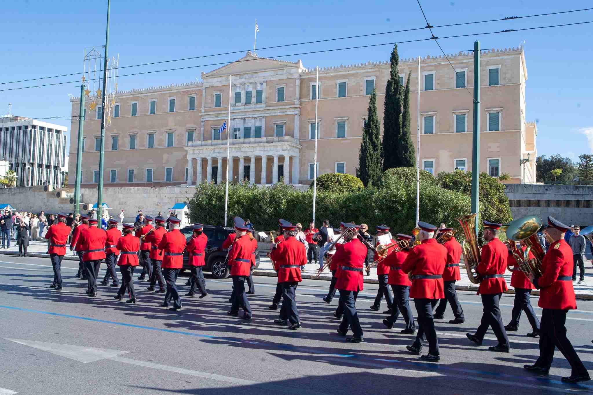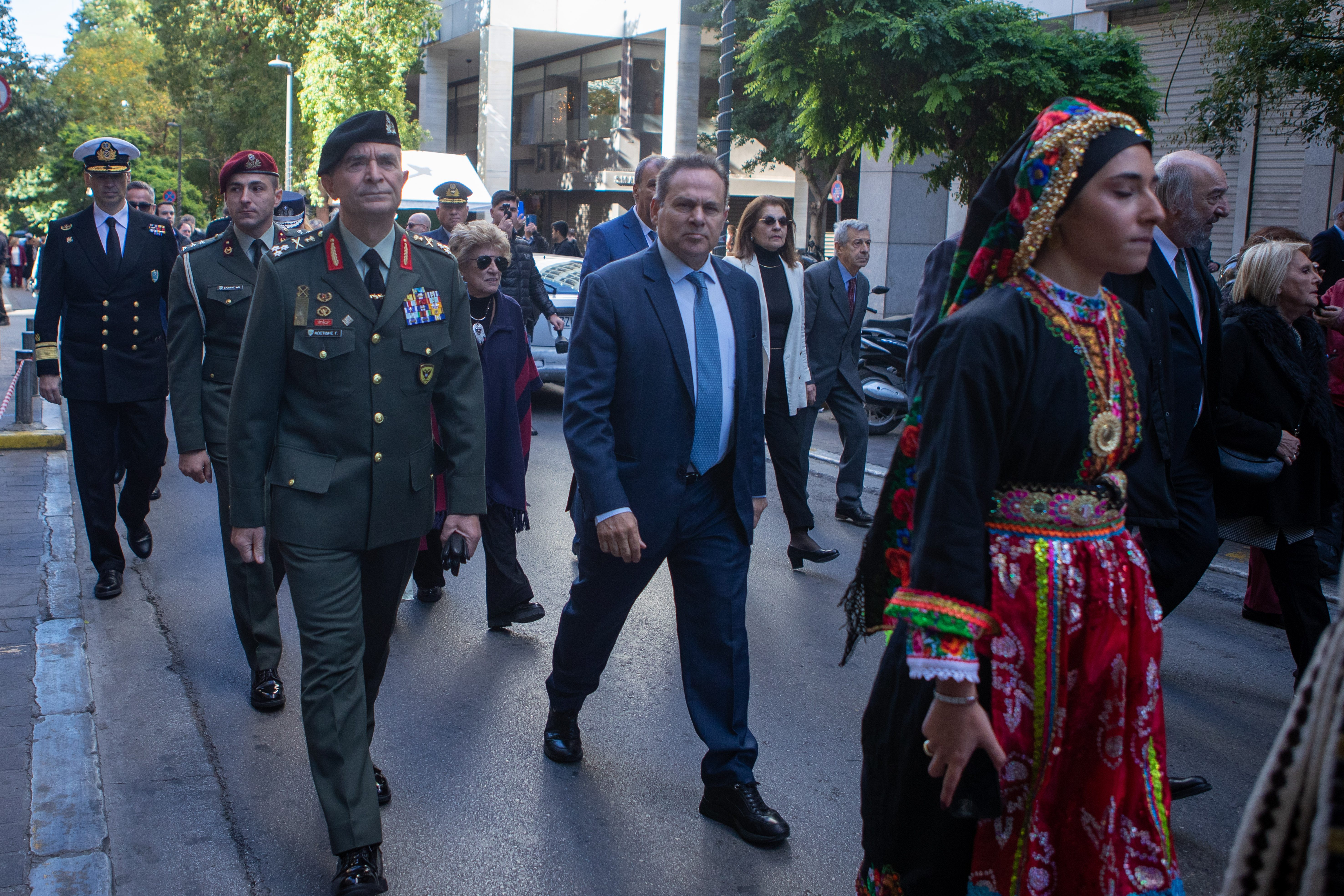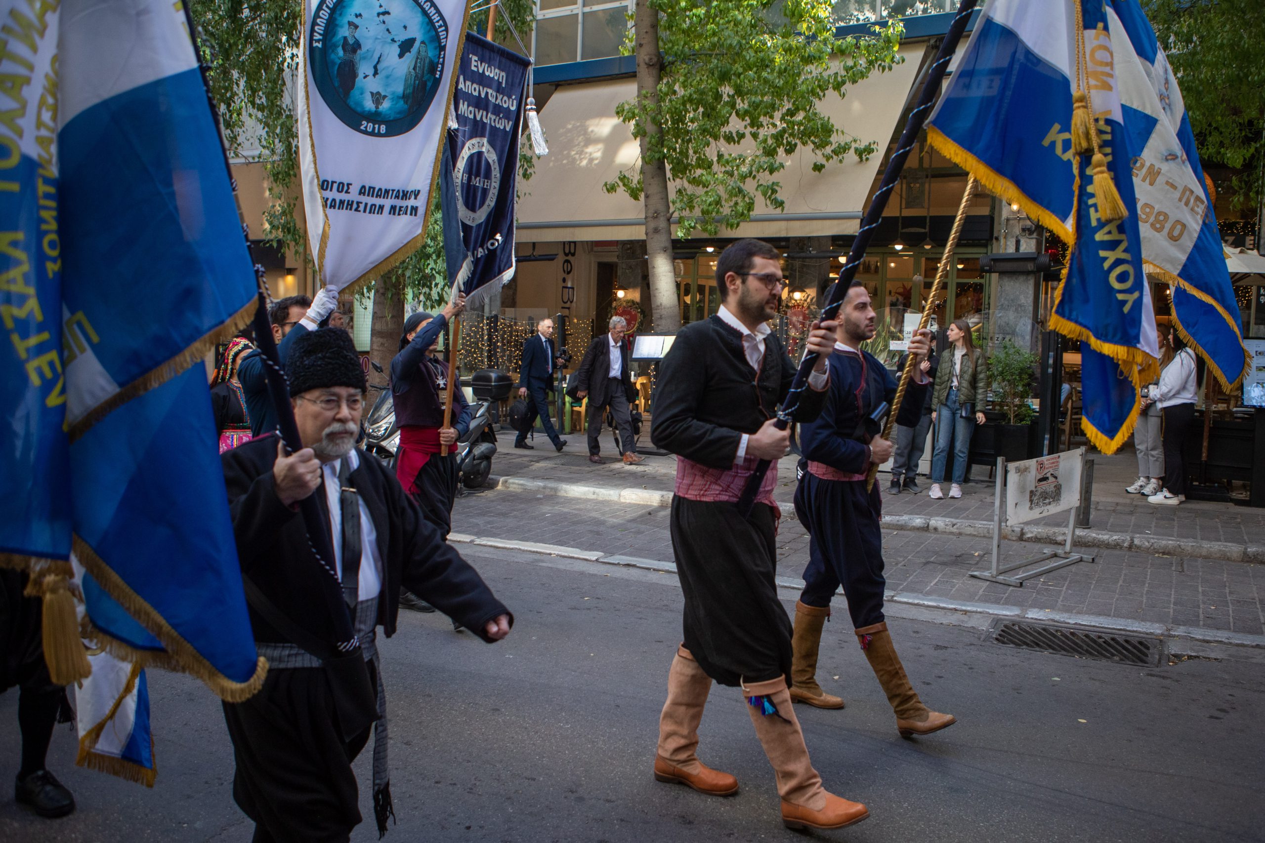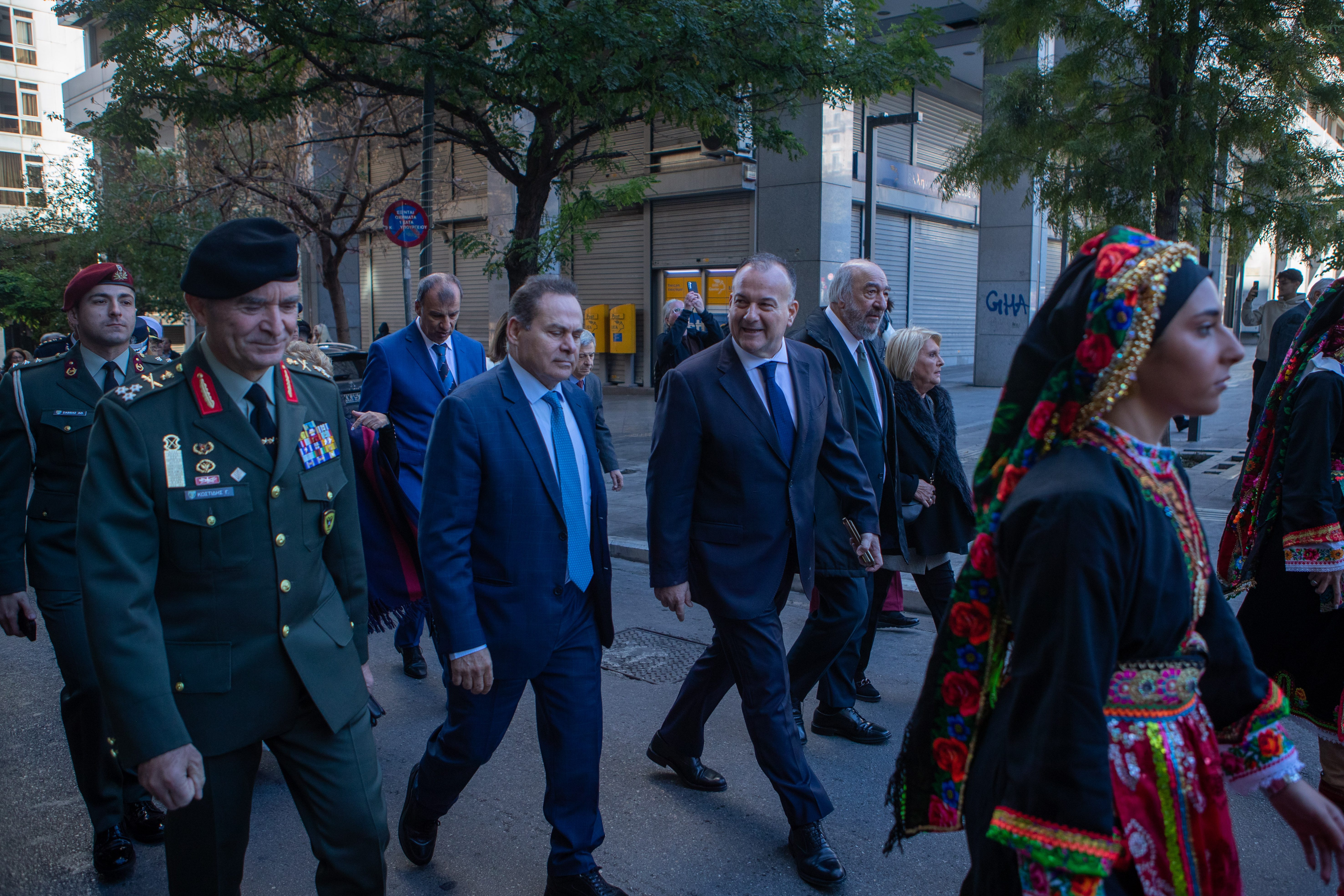 Μετά το πέρας της δοξολογίας ακολούθησε πολυπληθής πομπή από την Ιερά Μητρόπολη κατά μήκος της οδού Μητροπόλεως μέχρι το Σύνταγμα. Προπορεύονταν τα λάβαρα του Συλλόγου των Απανταχού Καρπαθίων, του Συλλόγου των Εν Ελλάδι Κασίων, της Ομοσπονδίας Δωδεκανησιακών Σωματείων, της Ένωσης Απανταχού Μανιατών, του Συλλόγου Απανταχού Δωδεκανησίων Νέων και του Ομίλου Καρπαθίων Νέων, με τη συνοδεία νέων, ντυμένων με τοπικές ενδυμασίες. Την παρέλαση, η οποία κατέληξε στο Μνημείο του Αγνώστου Στρατιώτη, παιάνισε η Φιλαρμονική Ορχήστρα του Δήμου Αθηναίων.