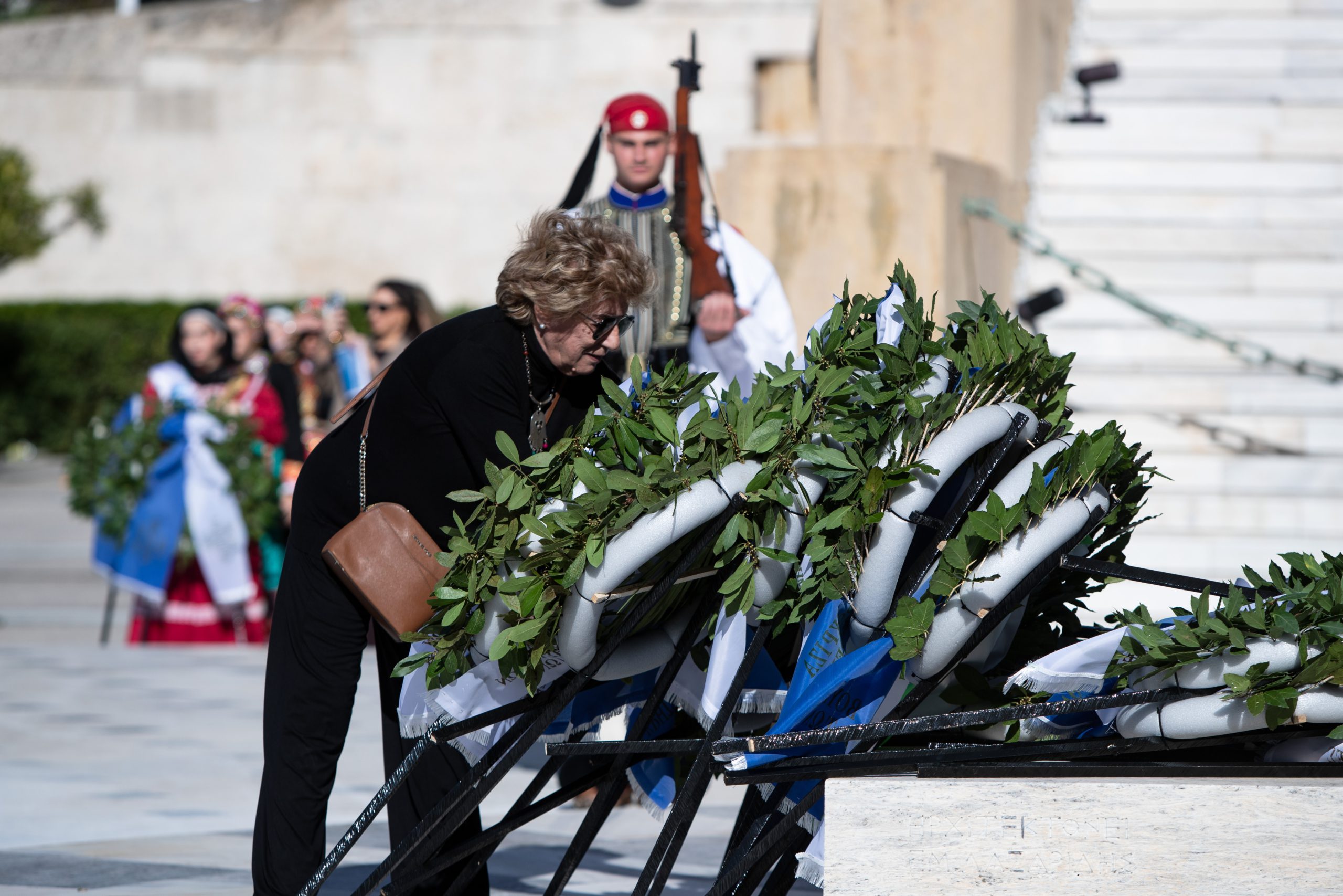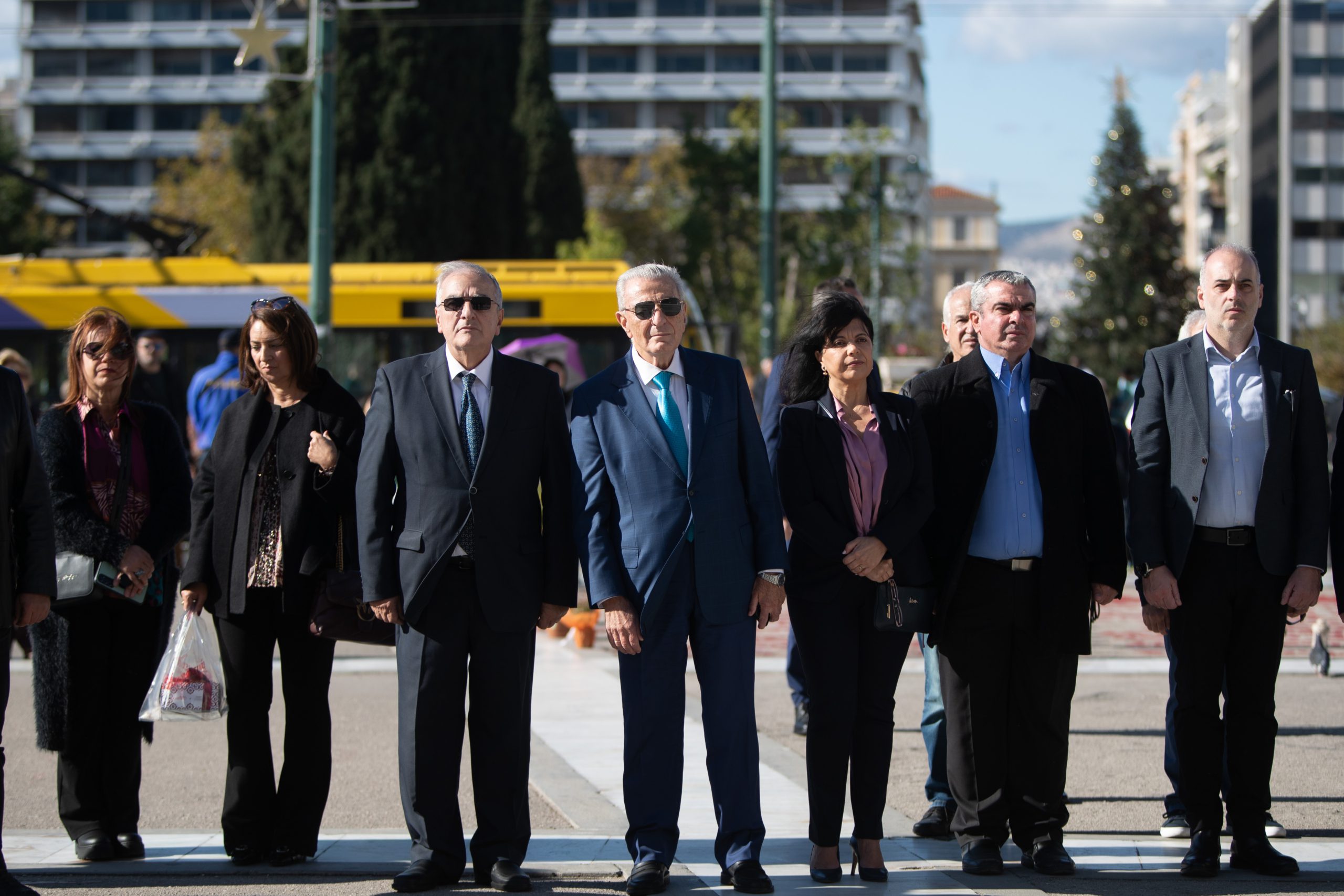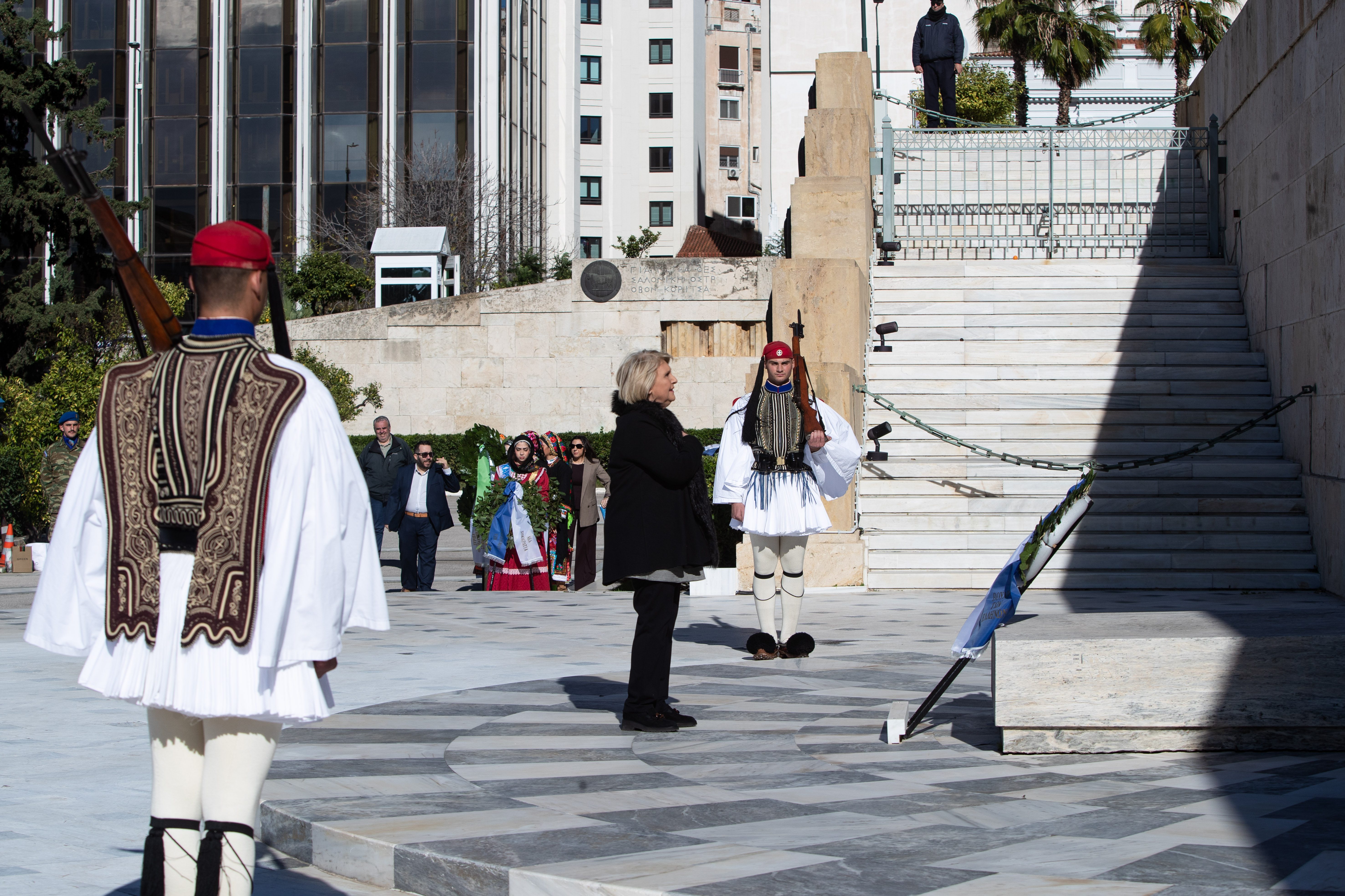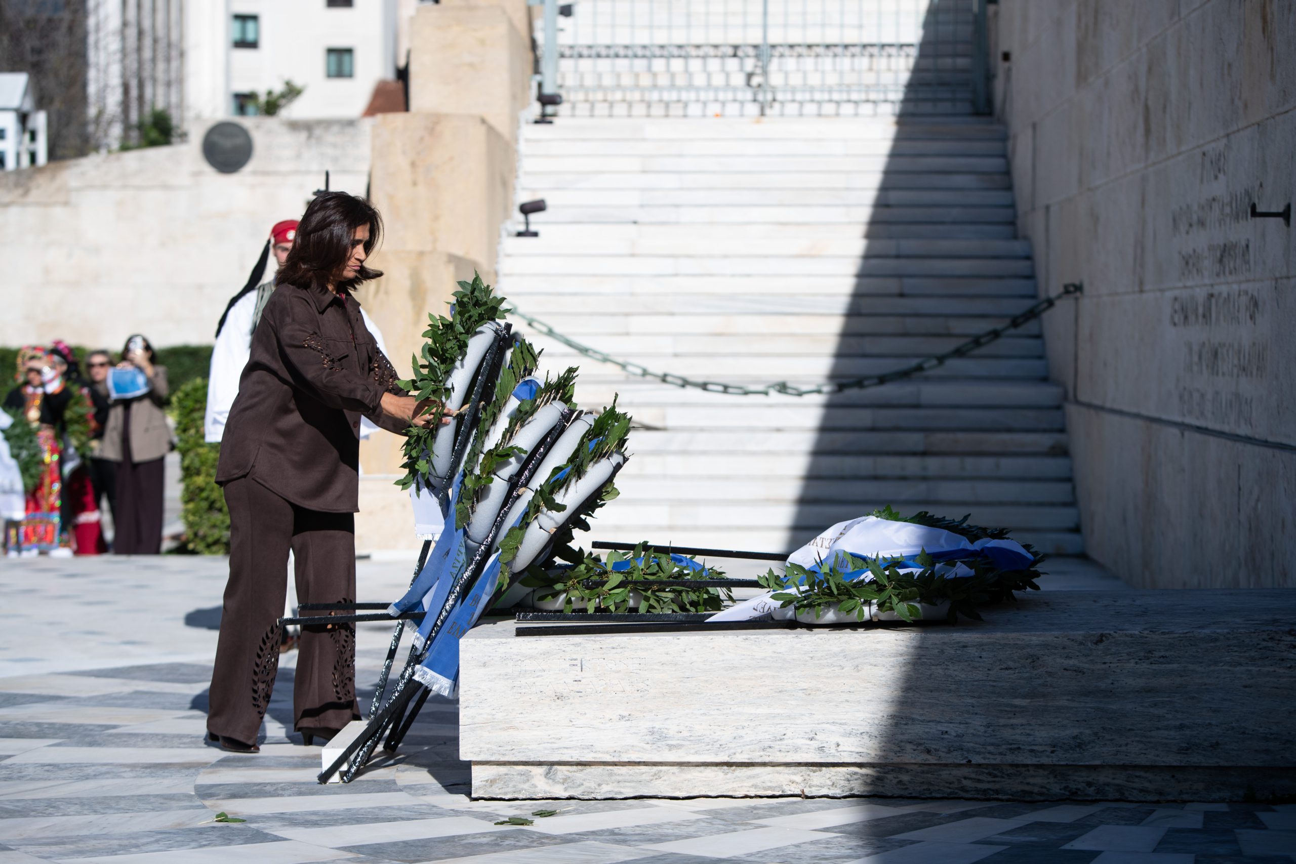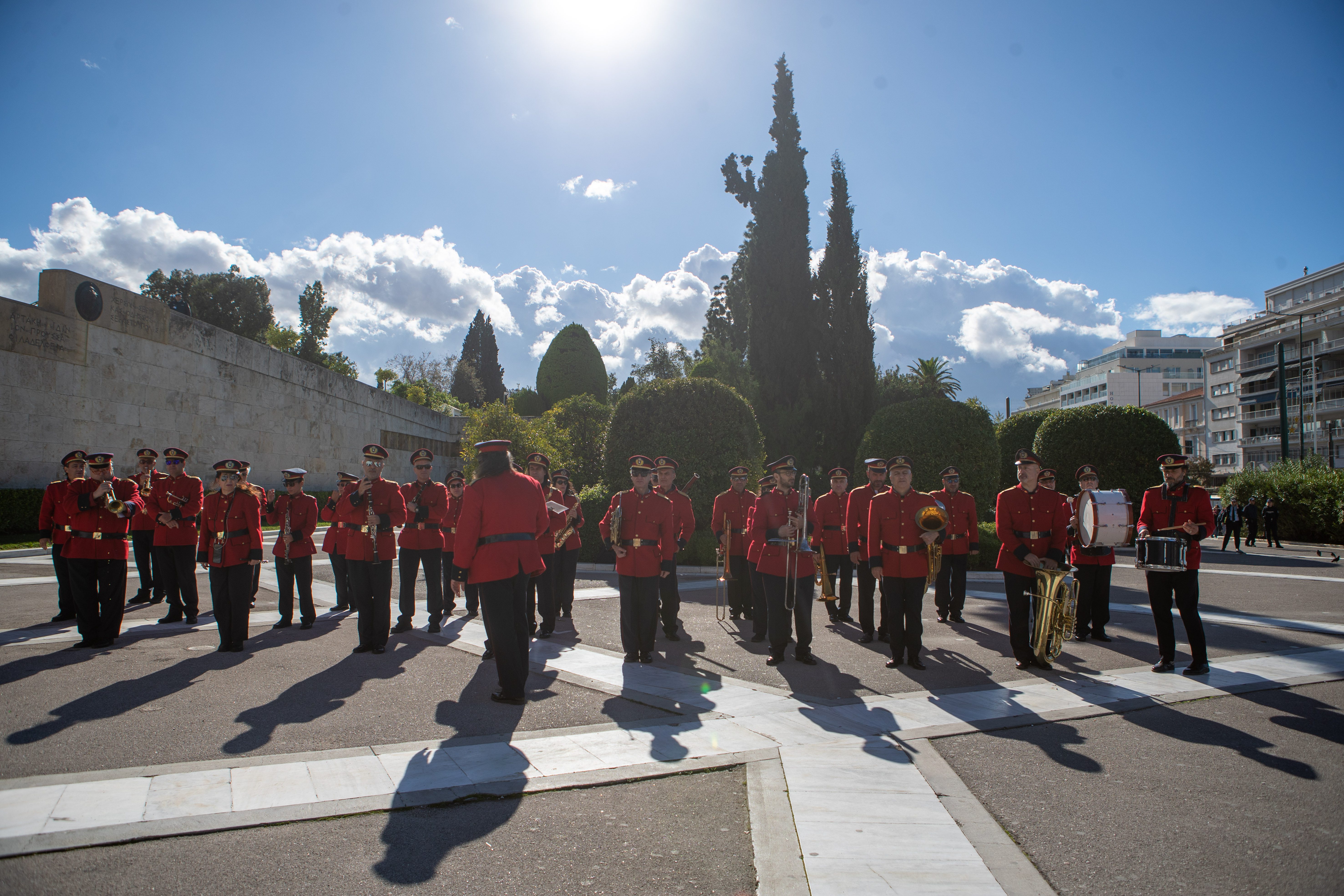 Στο Μνημείο του Αγνώστου Στρατιώτη στις 12:10 μ.μ. πραγματοποιήθηκε κατάθεση στεφάνων από την πολιτική ηγεσία, τις ένοπλες δυνάμεις, την τοπική αυτοδιοίκηση καθώς και δωδεκανησιακούς και καρπαθιακούς φορείς. Τελετάρχης ήταν ο Αντιπρόεδρος του Σ.Α.Κ. Ιωάννης Χριστοδουλάκης και συντονιστές τα μέλη του Σ.Α.Κ. Μιχαήλα Σπανομανωλή-Αμανεζή και Γρηγόρης Χατζηαντωνίου.