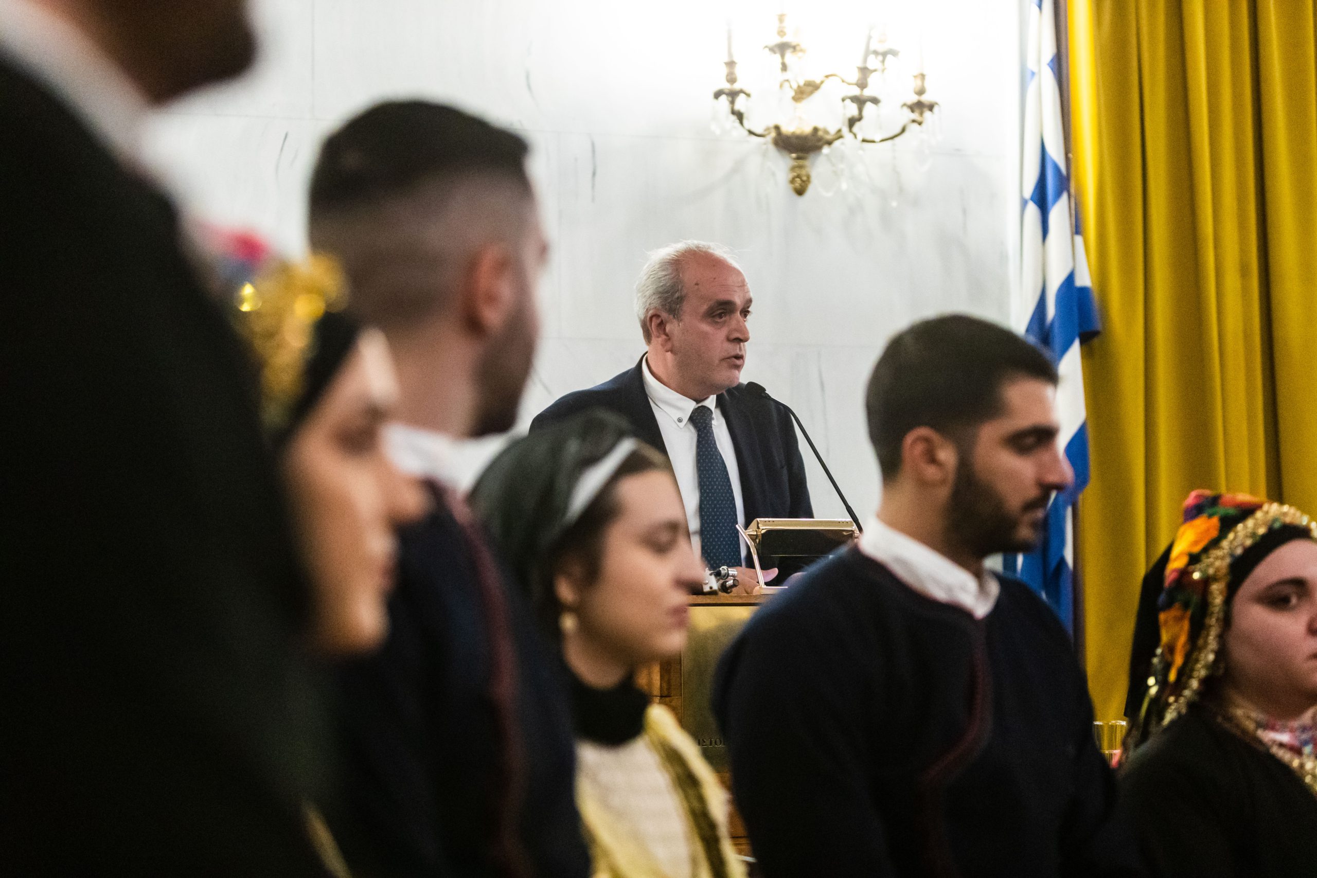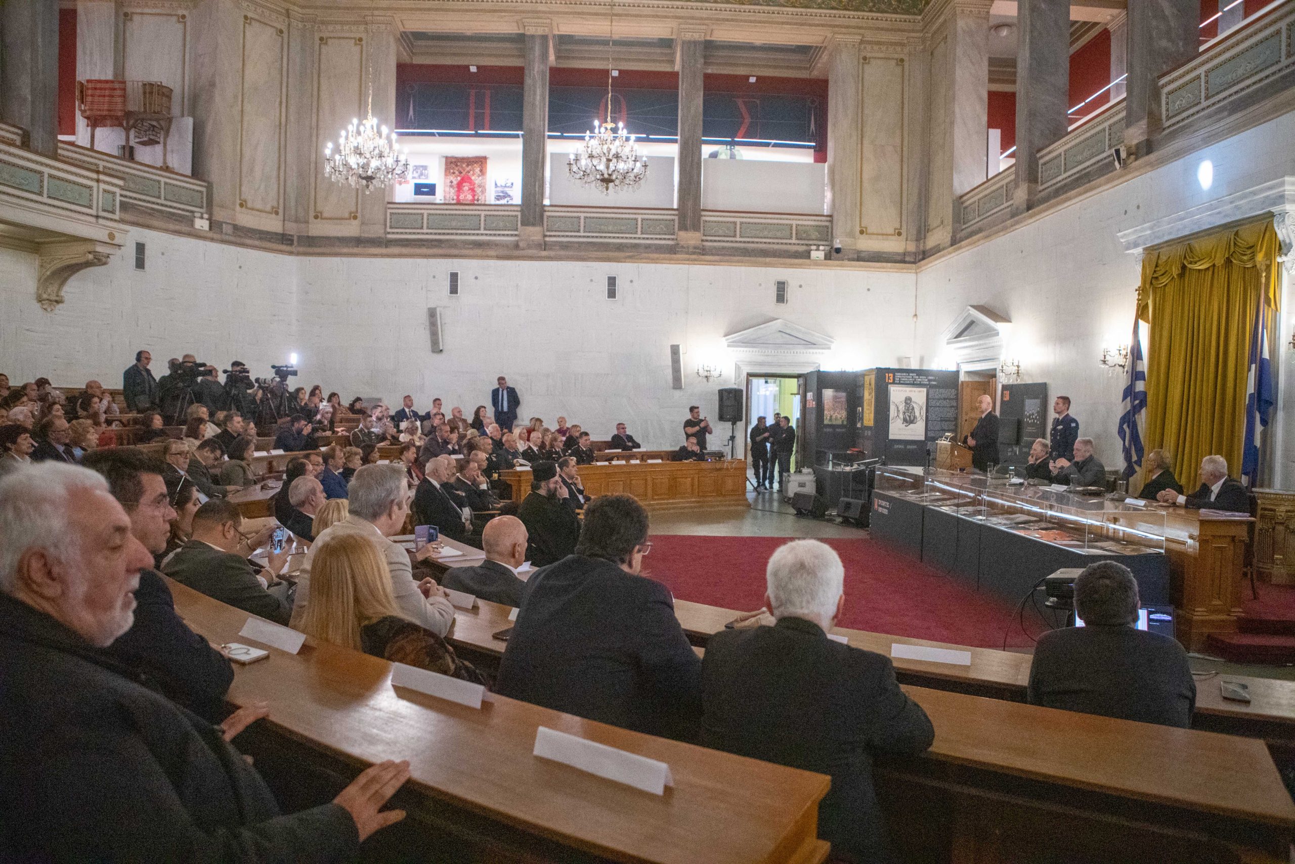 Θέλω να σας είμαι ειλικρινής. Είναι για εμένα μεγάλη τιμή που βρίσκομαι σήμερα σε αυτήν την αίθουσα, μια ιστορική αίθουσα για τον Ελληνισμό, την αίθουσα της Παλαιάς Βουλής, Έναν χώρο άρρηκτα συνδεδεμένο με την ελληνική ιστορία, με σημαντικές αποφάσεις αυτής της ιστορίας.