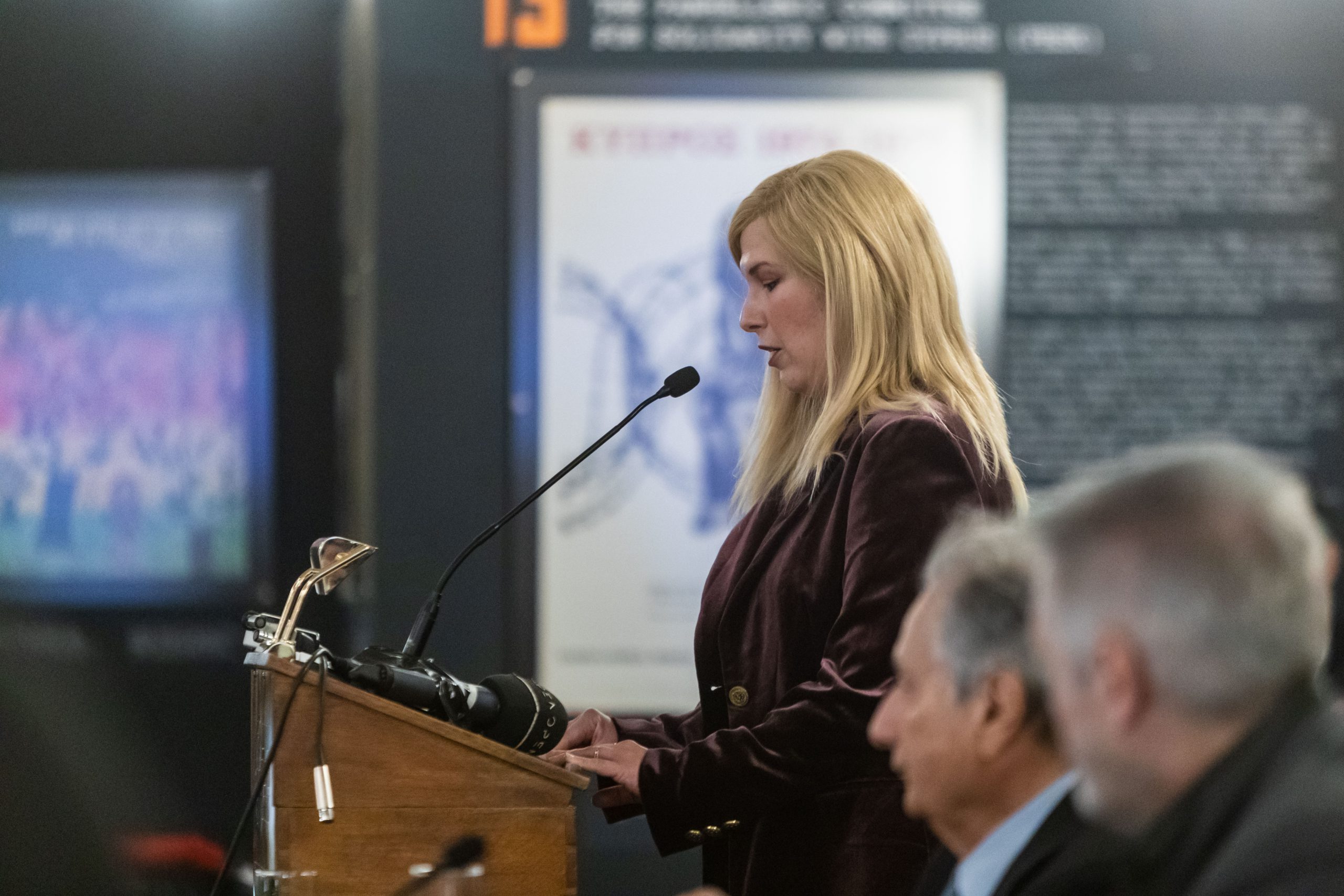 • Εκ μέρους της Πλεύσης Ελευθερίας και της Προέδρου κας Ζωής Κωνσταντοπούλου, η κα Αλεξάνδρα Σάντα, μέλος του κόμματος, θυγατέρα του ήρωα της Εθνικής Αντίστασης, Λάκη Σάντα